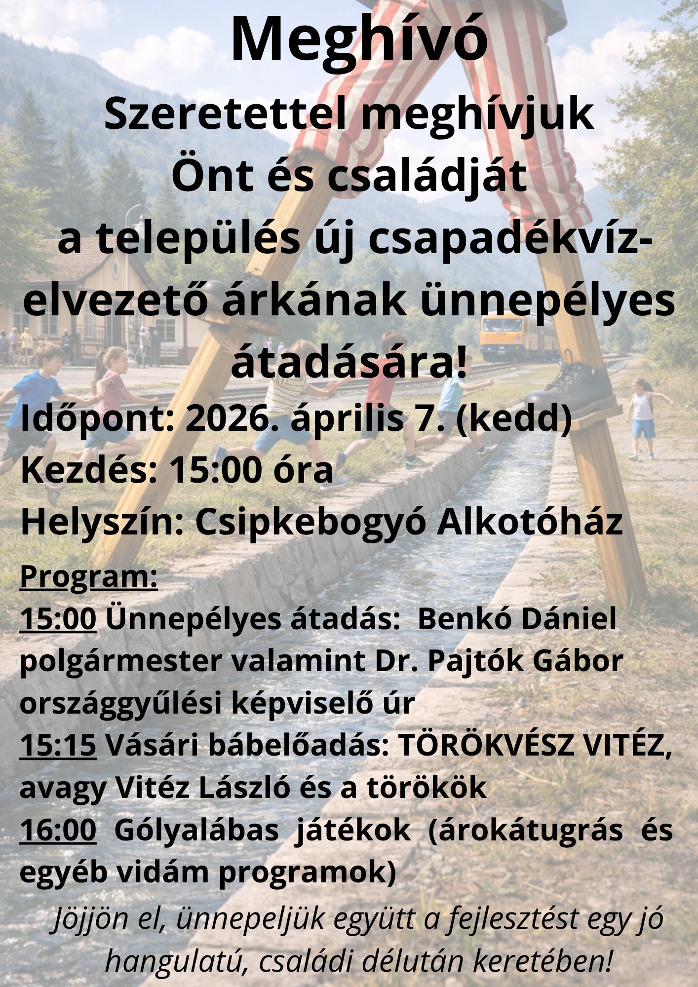 Meghívó a település új csapadékvíz-elvezető árkának ünnepélyes átadására